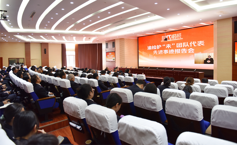 12月15日,最高人民检察院举行“时代楷模”渝检护“未”团队代表先进事迹报告会,曲靖市检察机关组织全体检察人员以电视电话会议形式收看报告会。为认真学习、大力弘扬渝检护“未”团队代表的先进事迹和时代精神,持续擦亮坚定拥护“两个确立”、坚决做到“两个维护”的鲜明政治底色,持续推进习近平法治思想的检察实践,曲靖市人民检察院于同日举办以“弘扬楷模精神 争创时代新功”为主题的道德讲堂活动。